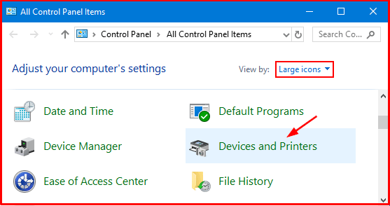 - After that select and Click on “Devices and Printers“. A list of printers is displayed.